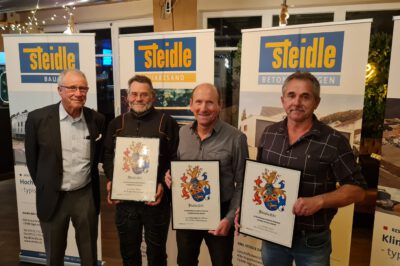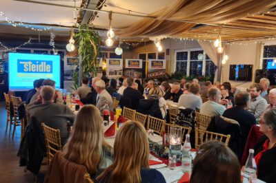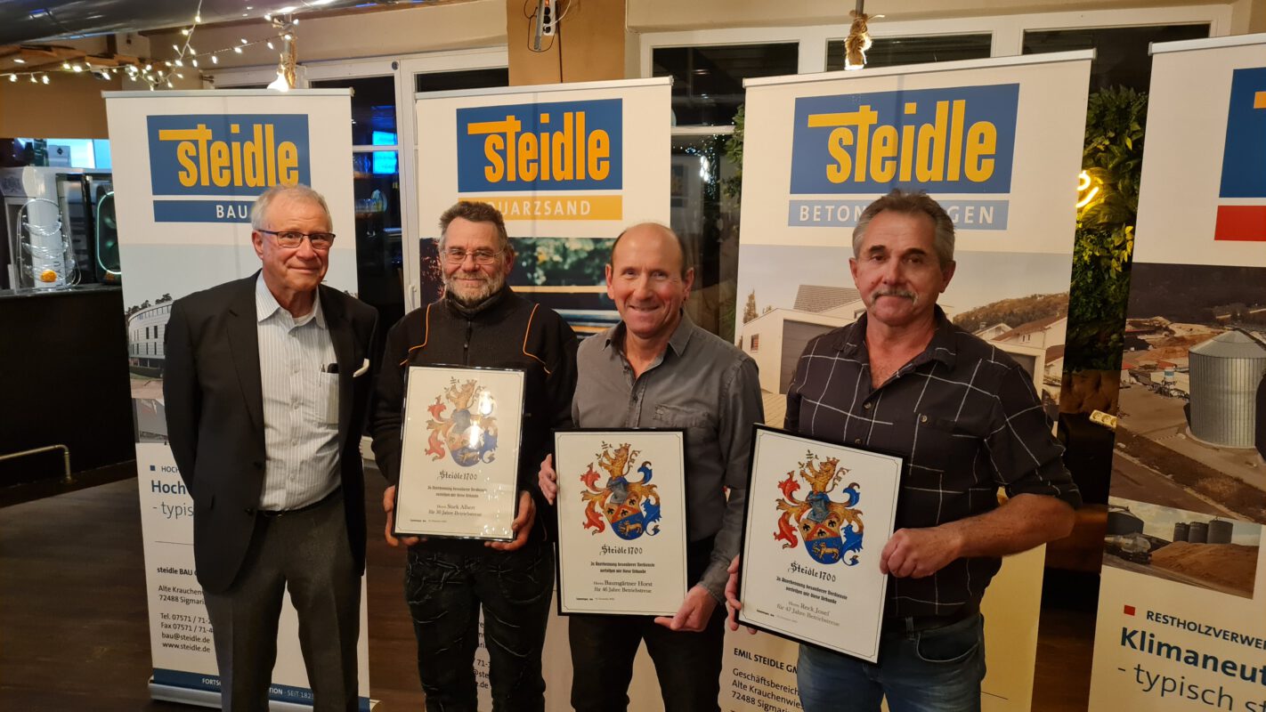 Nachmittags gab es einige Informationen und Bilder aus dem vergangen Geschäftsjahr von der Geschäftsleitung und den Spartenleitern. Auch unsere Azubis haben mit zwei kurzen Beiträgen zum Gelingen des offiziellen Teils beigetragen. Zum Schluss wurden die diejährigen Renteneintritte von Herrn Steidle geehrt und die anwesenden Personen haben die Urkunde mit dem Steidle-Wappen überreicht bekommen. Besonders anzumerken ist hierbei, dass bei einem Kollegen von der Ausbildung bis zum Renteneintritt stolze 47 Jahre Betriebszugehörigkeit zusammen kamen. Vielen Dank für diese besondere Treue!